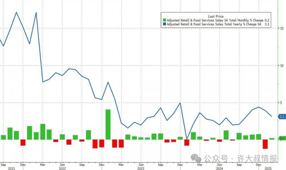 美国2月零售销售环比增长0.2%。