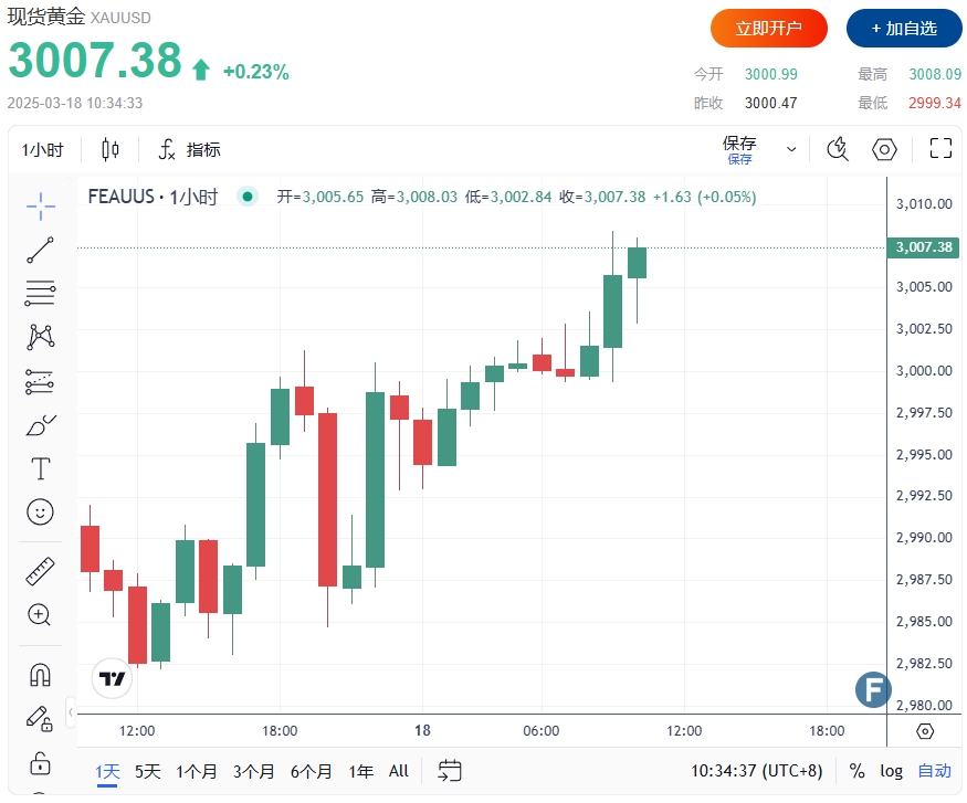 24K99讯 周二(3月18日),黄金价格升至3007美元,日内触及3008美元高点。中东避险情绪骤升,以色列对加沙地带进行大规模打击。美国总统特朗普警告,若红海再次遭到也门胡塞叛军袭击,伊朗将面临后果。高盛闪现交易信号,看到各国央行购买黄金速度非常快。