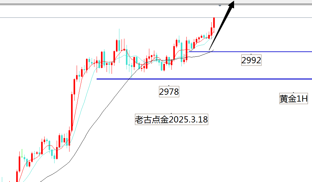 形态和均线支撑都是在2992附近,今天的白盘这个位置是强支撑了,日线的均线在2983附近,之前的强支撑是2978-2982一带,这个位置不破日线难改强势,今天的白盘我们关注2992-2997一带的多单机会,不要空,不要空,不要空,重要的事说3偏。