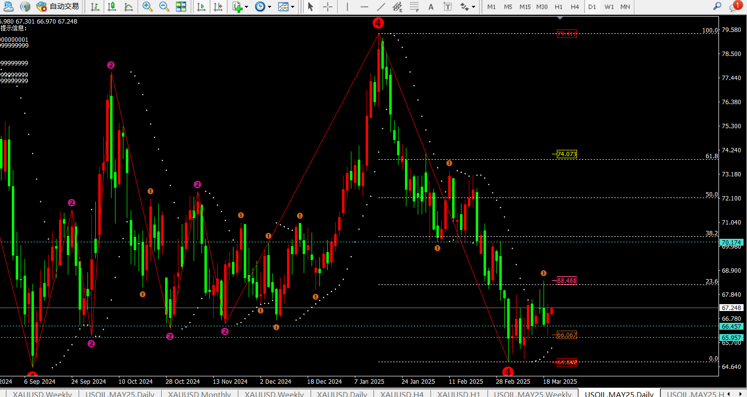 【2】日内首次触及68附近空,防守68.6,目标看67一线。