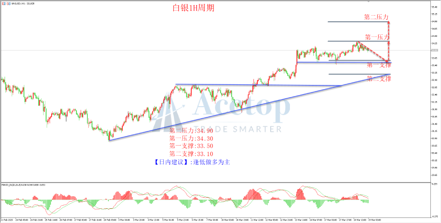 多单:建议33.50附近尝试做多,止损33.20,目标34.18、34.50附近。