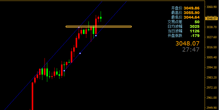 黄金回踩3036附近多,防守3028,目标3050上方,反抽初见3058附近空,防守3065,目标3040下方