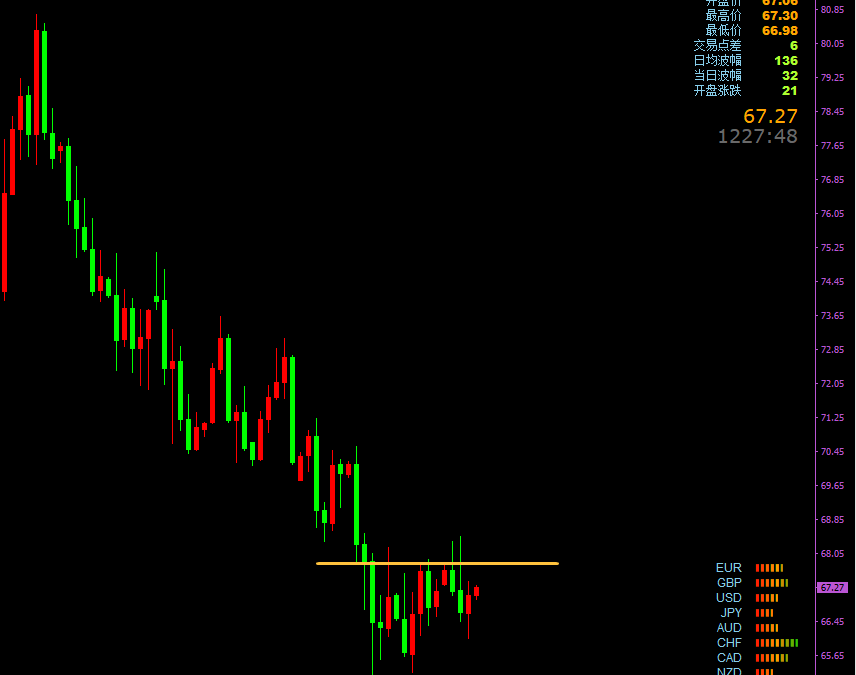 原油反弹67.8附近空,防守68.5,目标66/65一线