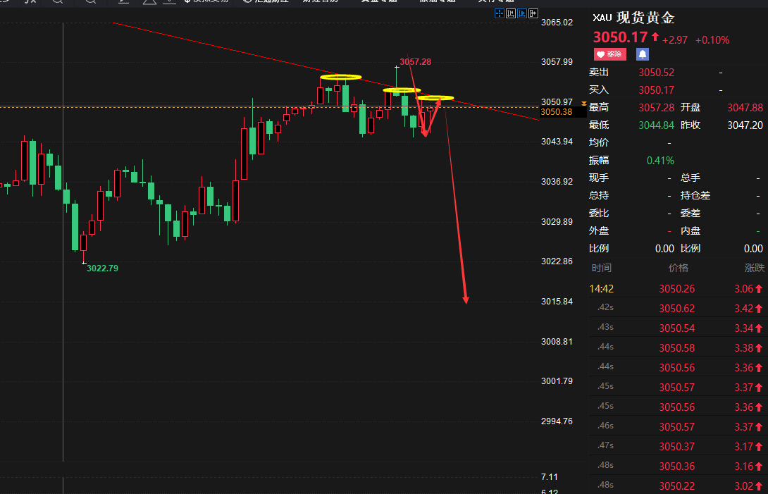 现价3050做空,3053加空,止损3060 目标3030-3020