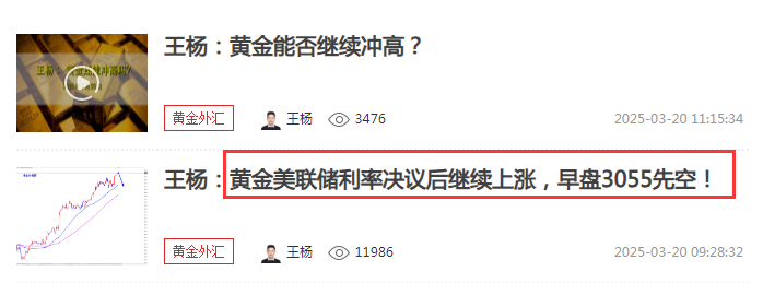 王杨:黄金早盘3055空如期下跌收割,黄金两连胜!