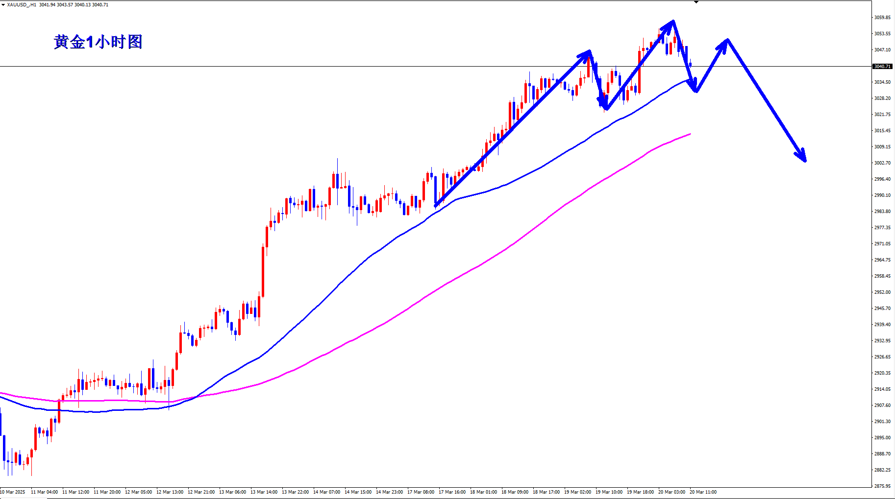 黄金1小时高位下跌,现在黄金如果继续下探,那么黄金反弹不破新高,那么黄金1小时也就可能呈现头肩顶的雏形。还是那句话,黄金高位回落,而且现在是高位,不要轻易追多,消息过后黄金多头量能得到消化,黄金多头需要重新获得支撑。黄金反弹承压高点3057下逢高继续空。