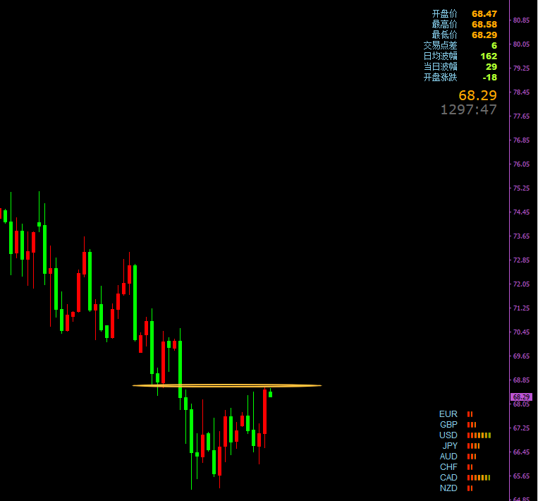 原油反弹68.8附近空,防守69.5,目标67/66一线