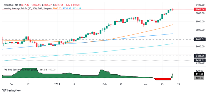 24K99讯 周五(3月21日)亚市盘中,现货黄金短线突然大幅下挫,目前金价跌至3031美元/盎司附近,较稍早触及的日内高点3047.52美元/盎司回落16美元。FXStreet分析师Christian Borjon Valencia最新撰文,对金价交易进行分析。