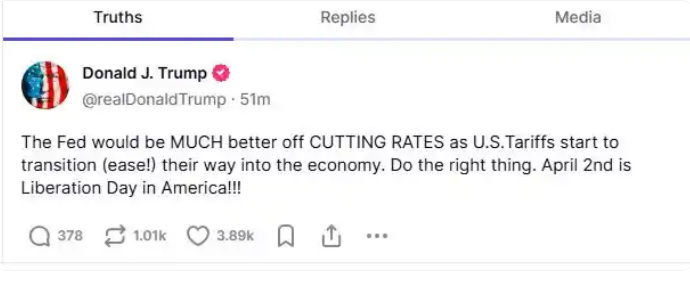 在美联储宣布维持利率不变后,老特在他的社交媒体网站Truth Social上发帖称:“随着美国关税逐渐影响经济,美联储通过降息来应对当前形势会更好,美联储最好还是降息。做正确的事!