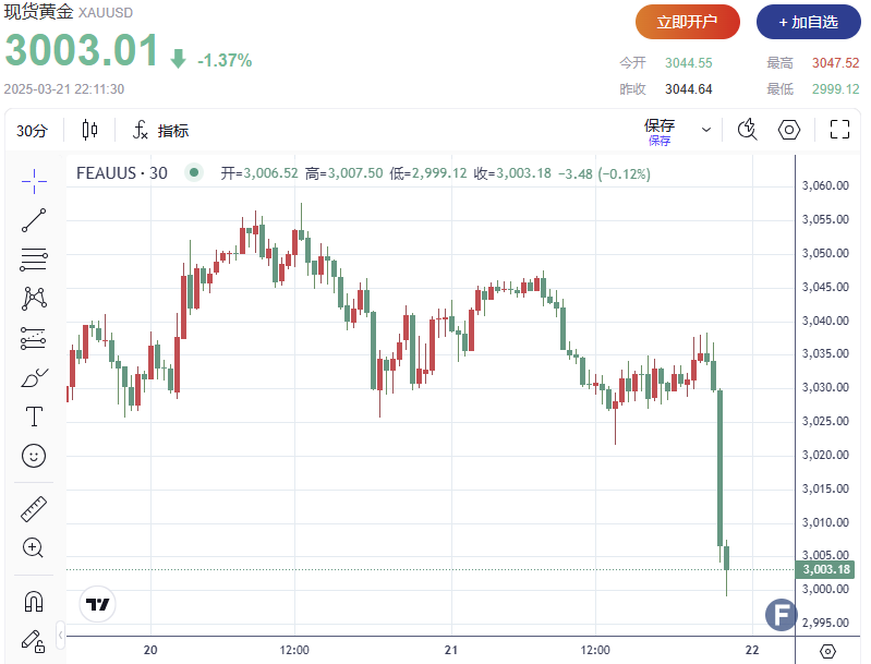 发生了什么?黄金较日高暴跌近50美元,一度失守3000关口
