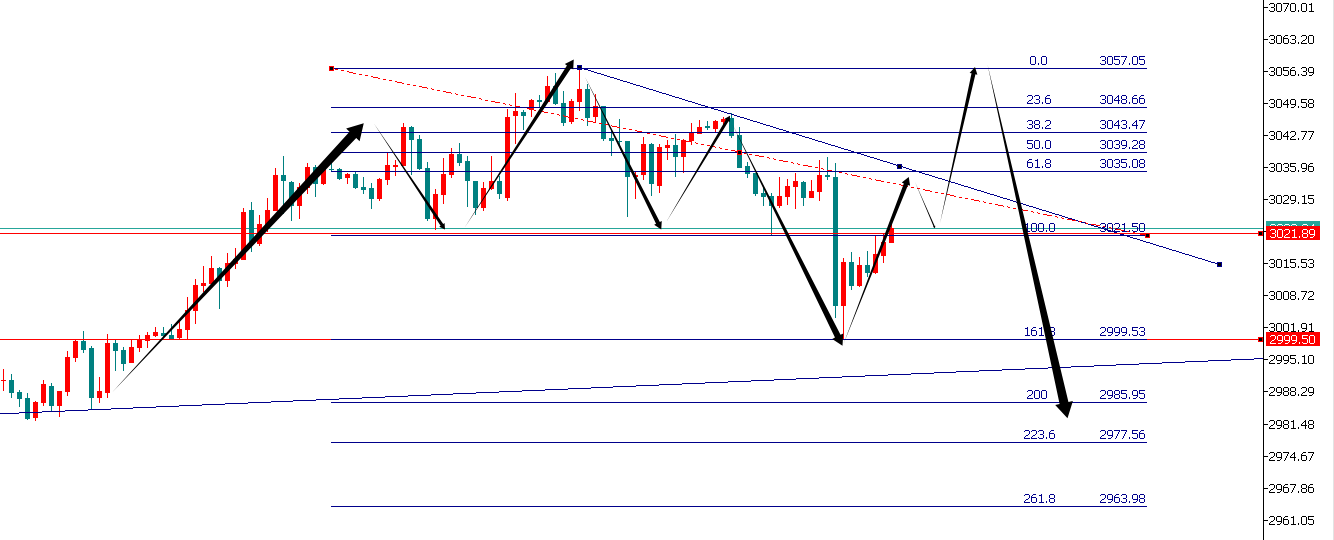 从黄金小时图来看,当前重新站稳此前头肩顶颈线位置3022之上,下周一不排除开盘黄金直接拉升。倘若再次失守3022,那么回测继续测试3000-3005区域。上方阻力位且关注3035附近,这里也是3057-2999的黄金分割位61.8%位置。