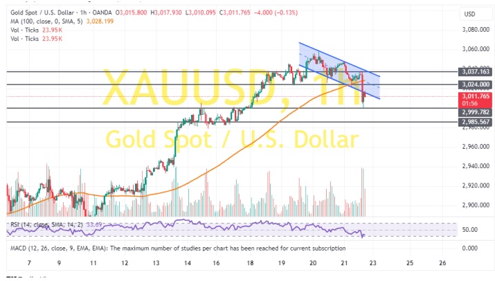 Kitonyi写道,周五,金价从约3037美元/盎司的日高大幅回落。在60分钟的图表中,金价完成了从下行通道的向下突破。