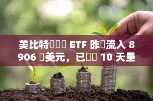 美比特幣現貨 ETF 昨淨流入 8906 萬美元,已連續 10 天呈淨流入