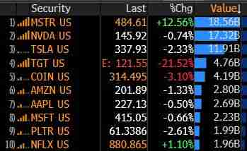 另外根据彭博ETF分析师Eric Balchunas贴文,微策略19日成为美国交易量最大的股票,超越英伟达和特斯拉,非常惊人。