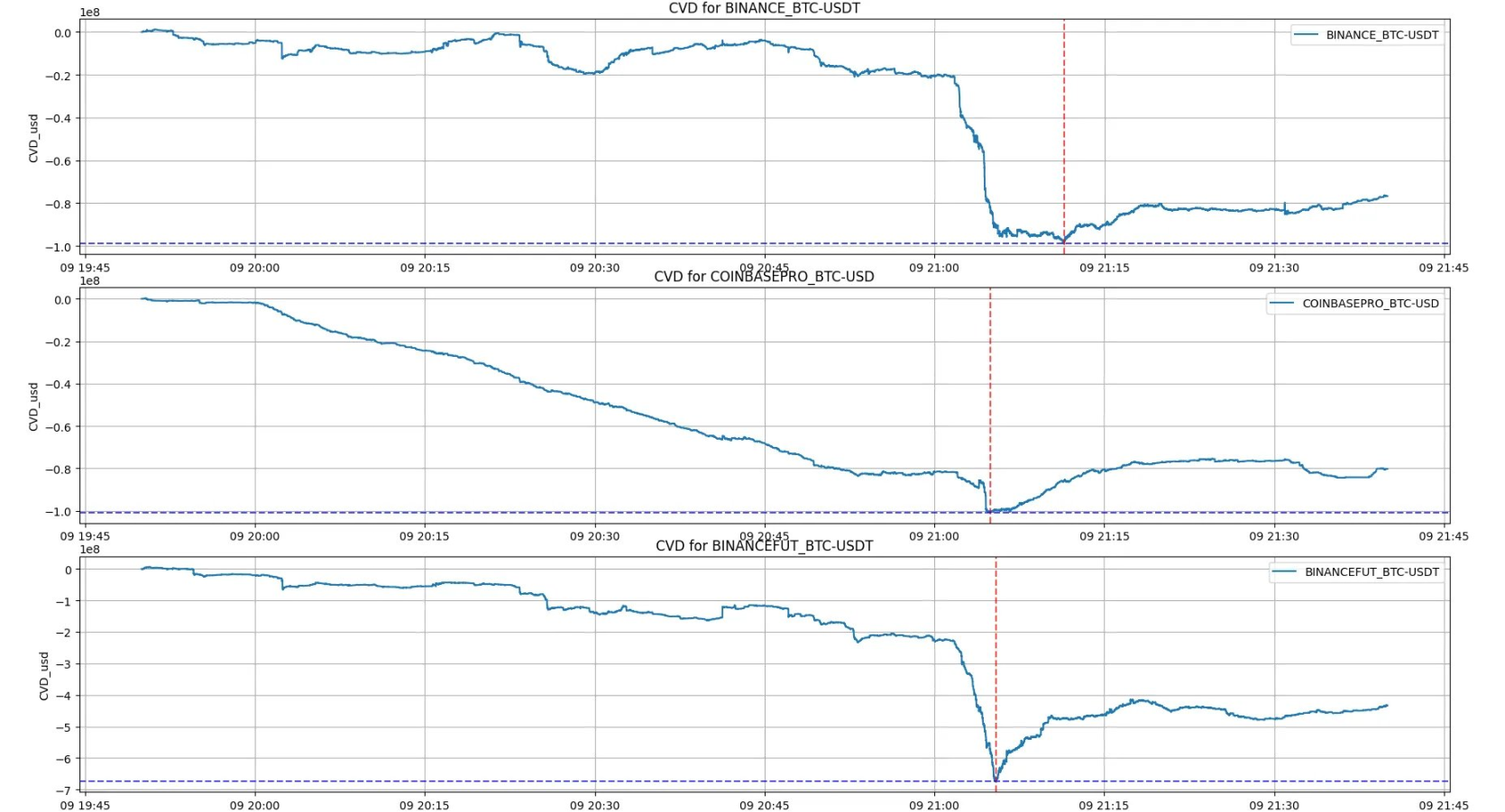 首先,需要确定抛压最大的地方。我们发现——Coinbase 上的交易员在此次大规模暴跌发生前近一小时就开始大举卖出。