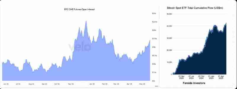 这一点可以从两方面看出:一是美国上市的现货比特币 ETF 持续吸引大量资金流入,二是芝商所(CME)比特币期货的未平仓合约规模依然相对温和。