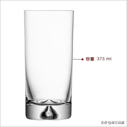 如果你喜欢加其他饮料兑威士忌来喝,当然就要选择:高球杯Highball glass。可以加冰、苏打、金汤力或者其他各种软饮时使用,范围十分广泛。容量一般在100ml-300ml,有些会更大容量。