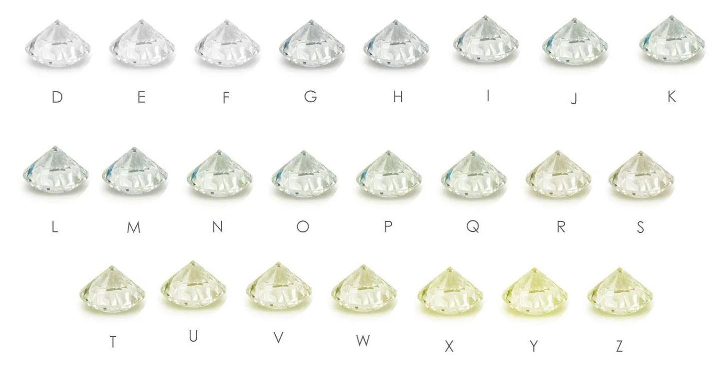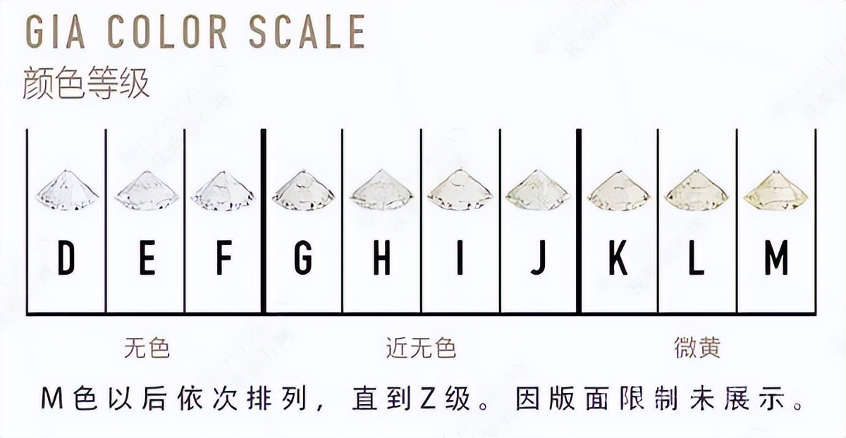 ①国际上将常见的钻石分为23个颜色等级,并分别用字母D-Z来表示: