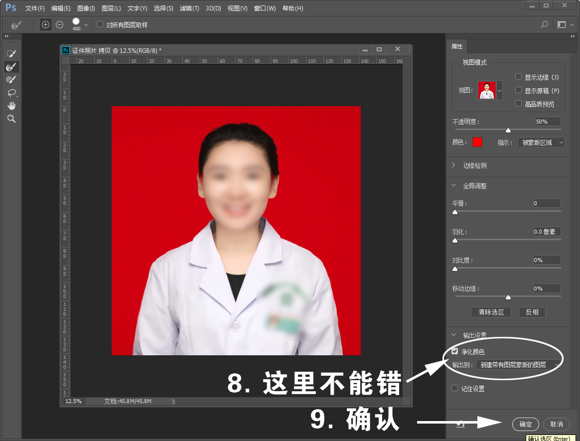 第三步:选择净化颜色,输出“新建带有图层蒙版的图层”。确认