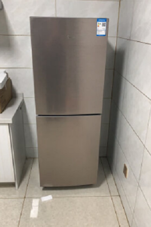 棕色的机身,彩钢材质面板,使得这台电冰箱开上去很有质感,高度在1米5左右,中等户型厨房也能放得下,大存储空间满足单身人士的宅居囤货需求,。