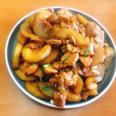 我用的胡瓜大 挑胡瓜时 可掐皮尝一下苦不苦全程中大火 收汁可大火 因为用的带肥后腿肉 所以不要放太多油