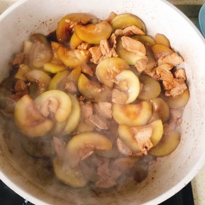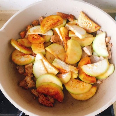6、加盖闷煮至胡瓜变软(5~8分钟)