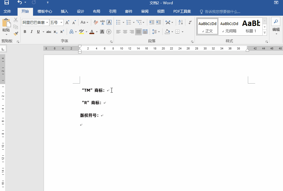 输入“TM”商标,可使用快捷键【Alt Ctrl T】;输入“R”商标,可用【Alt Ctrl R】;输入版权符号,可用【Alt Ctrl C】。