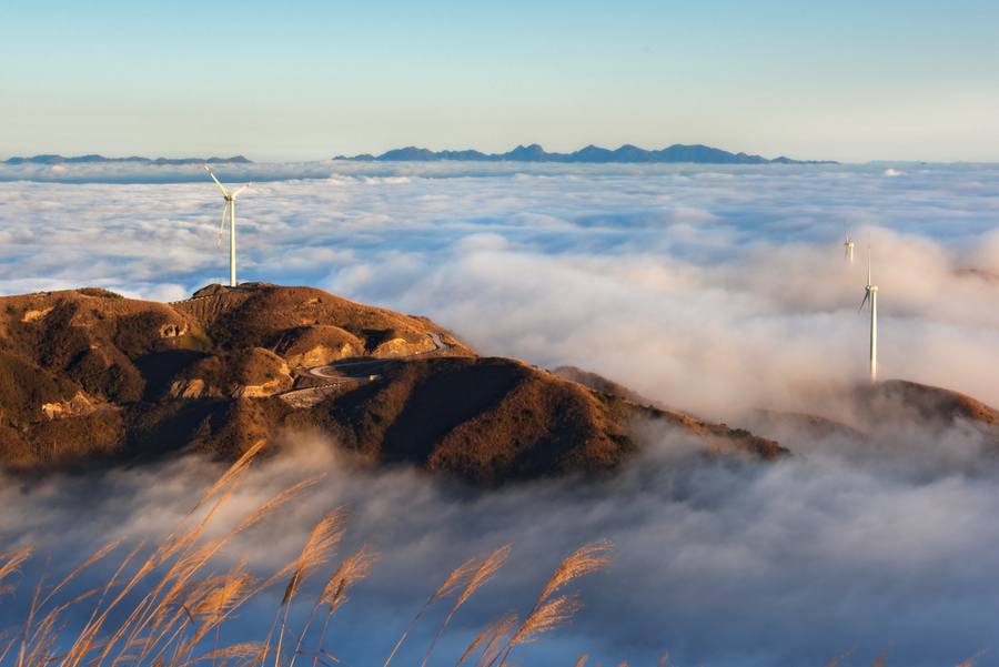 (3)【示例】:战士们行进在云雾迷蒙的山间小路上。