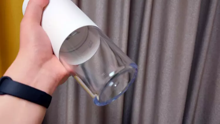 ▲杯身的白色部分采用的是防滑硅胶材质,亲肤舒适握感好,亲测即使在手湿的状态下防滑效果依然很棒,手持使用时不易滑落。