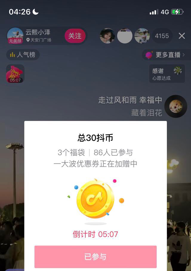 3、等待开奖即可,若中了福袋则可以0充值获得抖币。