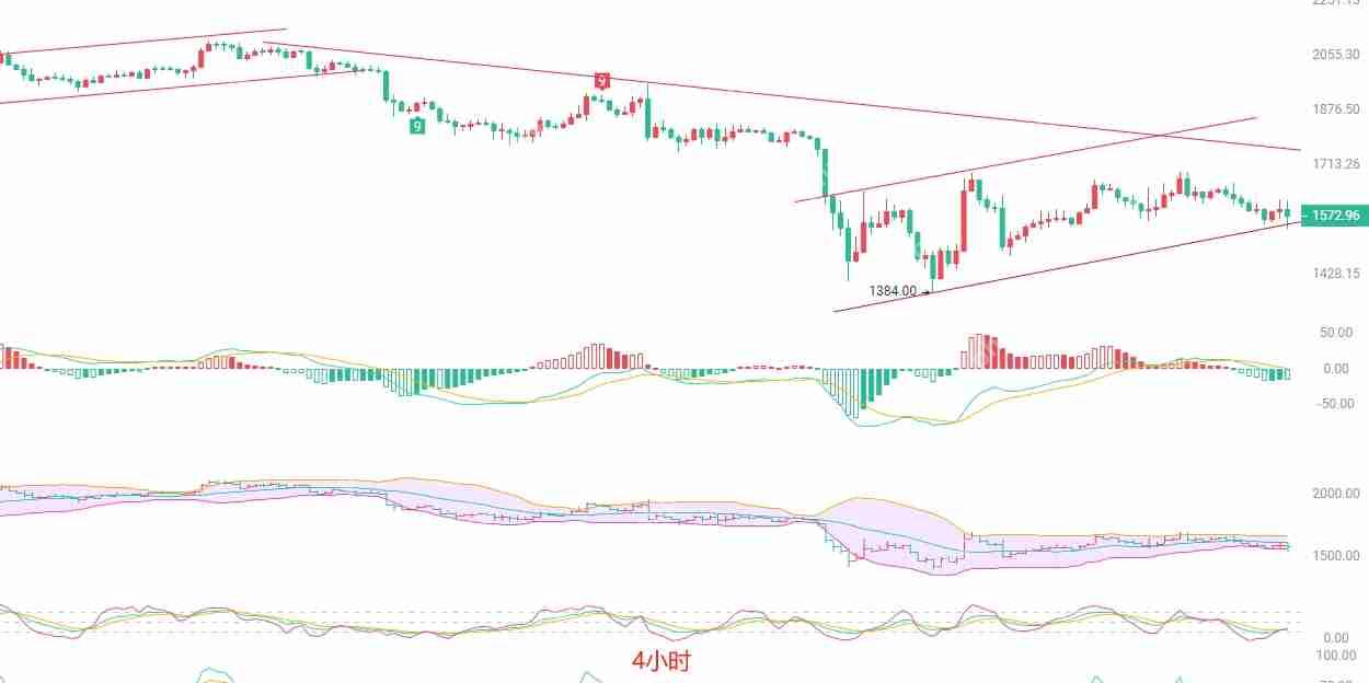 在当前的市场环境下,以太坊的价格走势值得我们深入分析。截至北京时间凌晨两点,以太坊的价格为1565美元。昨日价格在1550美元附近触及北上入场点后,市场并未如预期般出现高位空头,而是主力在探底支撑的强度。这种情况下,严格按照盘前计划执行交易显得尤为重要。