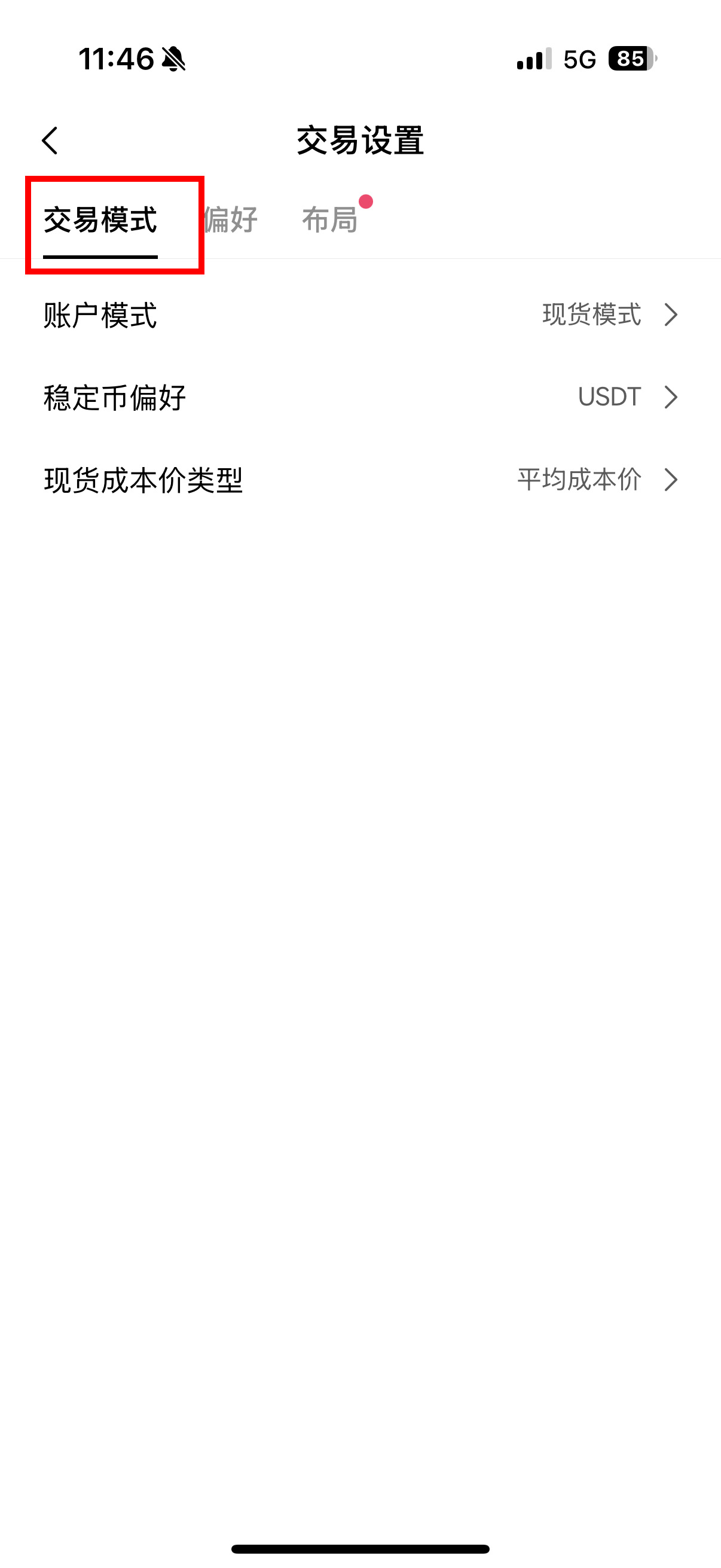 - 选择账户模式:在交易页面中,通常会在右上角或其他明显位置看到 “账户模式” 或类似的选项,点击该选项。