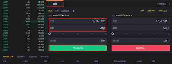 7. 选择【现货】,输入买入数量,点击【买入ARKM】,即可完成购买。