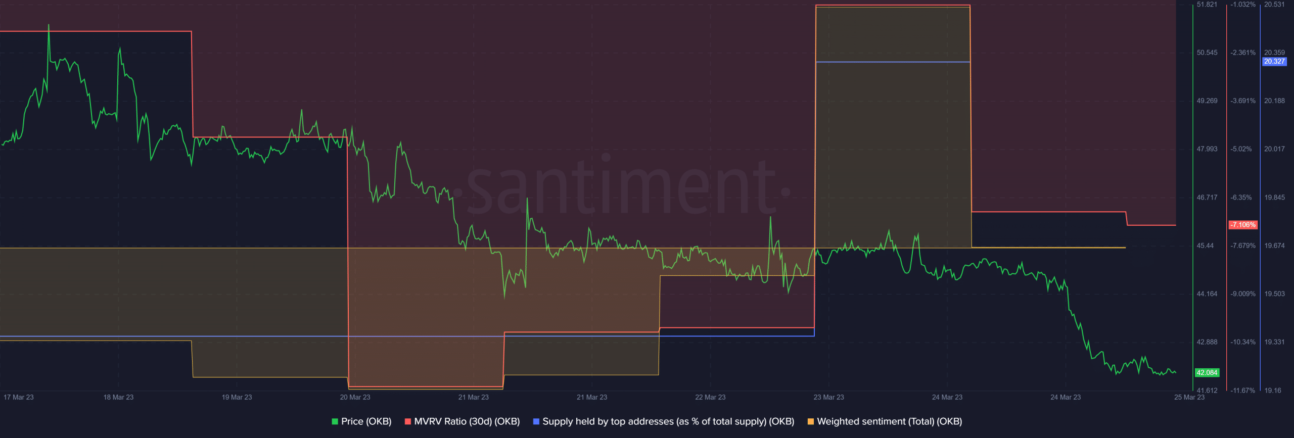 - OKB 早些时候见证了价格的大幅上涨,但趋势在过去一周发生了变化。