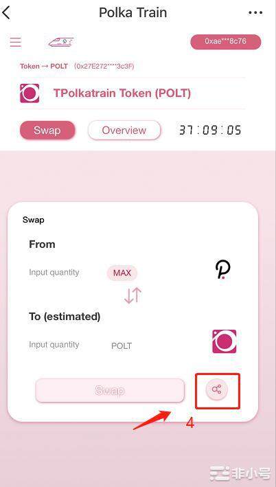 5、Swap交易,输入测试币POLT数量,点击swap按钮,按照提示完成交易,本次交易完成。