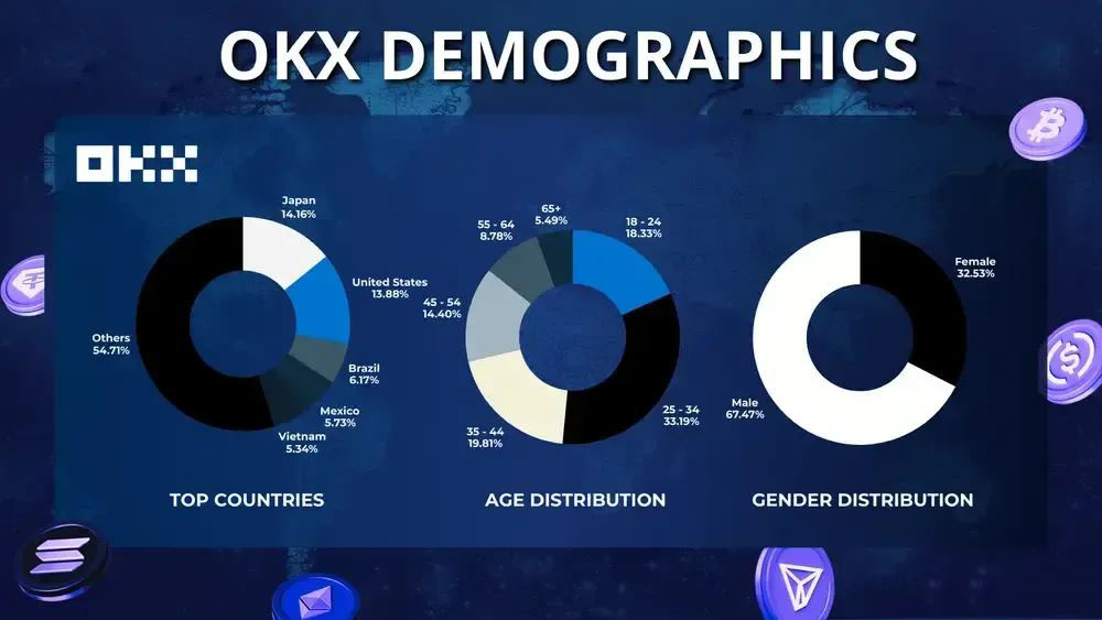 根据Similarweb 的数据,日本(14.16%)、美国(13.88%)、巴西(6.17%)、墨西哥(5.73%)和越南(5.34%)占平台流量的最大份额。其余 54.71% 的流量来自其他国家,显示出广泛的用户分布和强大的国际渗透力。