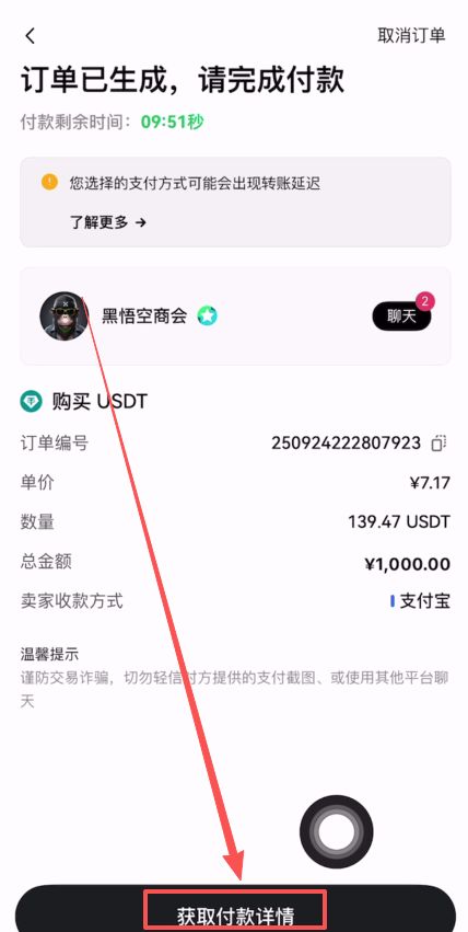点击下方的【获取付款详情】。