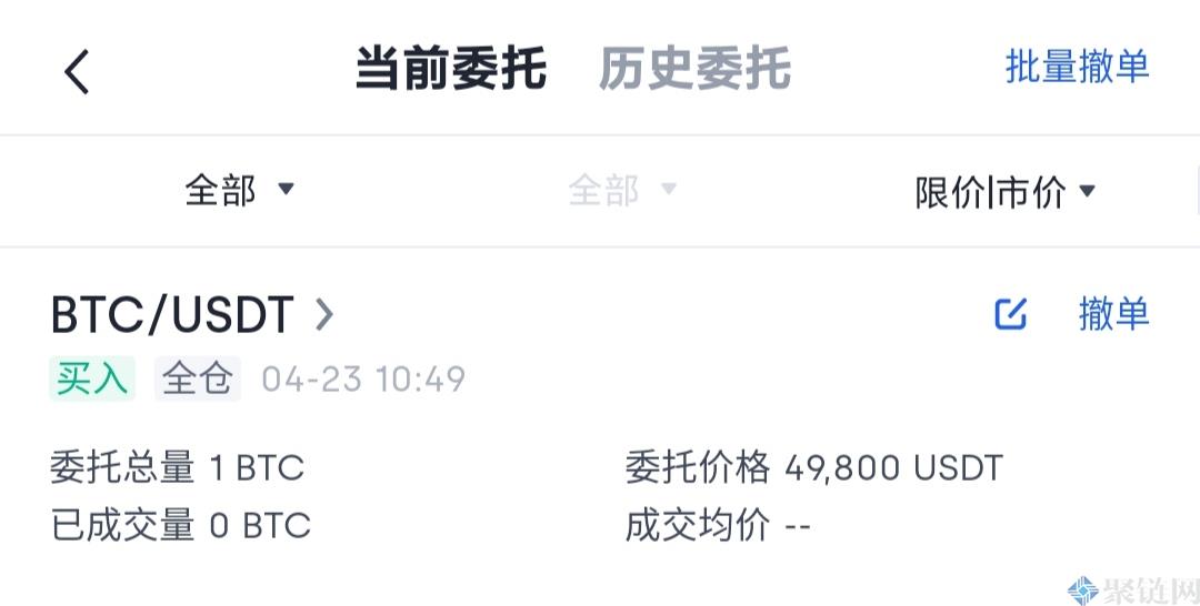 3.进入货币交易页面后,选择购买方式,输入购买价格和数量,点击购买BTC可以。购买方式通常是限价委托,可以设定理想的购买价格。在订单成功之前,您可以随时查看委托订单信息并撤回订单。
