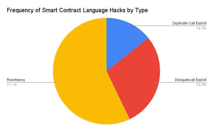 这一层的黑客利用了智能合约语言(如 Solidity)的弱点和漏洞,例如可重入性(reentrancy)和实现委托调用(delegatecall)的危险,这些可以通过遵循安全规范来规避。