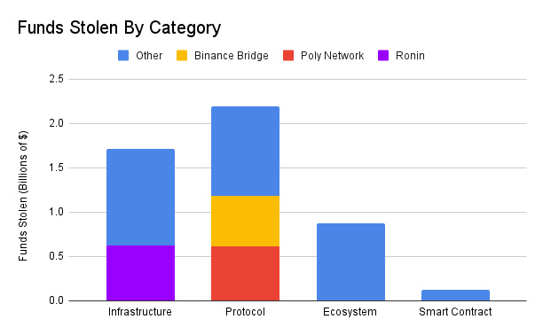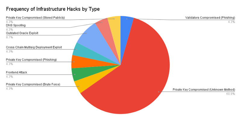 如果排除前三大攻击,则针对基础设施的被盗案件是损失资金最多的类别。