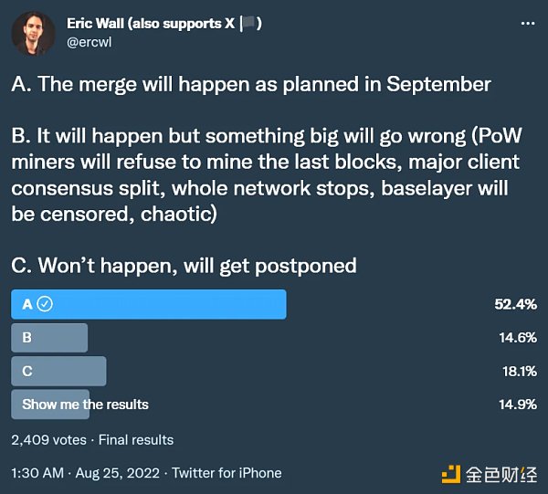 如果你不相信这种观点,可以看看 Eric Wall 的 Twitter 民意调查:
