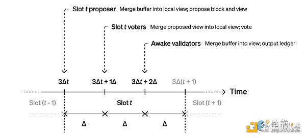 投票缓冲(也称为view merge,最早出现在新的共识协议 Highway 上)。简而言之,缓冲从网络收到的选票,以及在每个验证者的本地视图中精心定时包含这些选票,保证了在具有诚实提议者的slot中,所有诚实的验证者都投票支持提议者的提议。这导致了重组弹性:诚实的提议者的提议保证保留在规范链中。随之而来的是安全性(即输出账本的安全性和活跃性)。