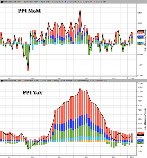 美国劳工部周四公布的数据显示,2月份生产者价格指数(PPI)远超预期,环比上升0.6%,为2023年8月以来最大增幅,预期仅为0.3%,这进一步表明了美国粘性通胀的阴霾依然挥之不去。