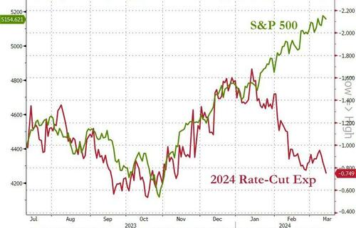 事实上,如下图所示,今年以来在美联储降息预期持续缩水的背景下,标普500指数的走强,本身就有些打破了去年两者间的紧密关联。而这一幕真的会长期延续下去吗?投资者眼下或许有理由对此表示质疑。