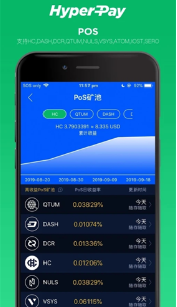 2、更强大的资产管理功能:币增宝,PoS矿池,锁仓,超短期理财产品等。其中币增宝支持BTC、ETH、EOS、USDT、BCC、XRP、ADA七大币种;PoS矿池支持HC、QTUM、DASH、DCR四个币种。
