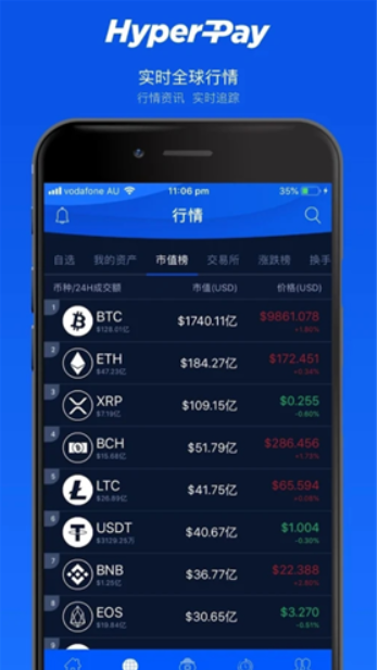HyperPay钱包app官方版是一个非常强大的数字资产钱包,支持BTC/ETH/EOS/USDT/等主链币,为全球数字货币用户和企业提供资产托管、理财增值、消费支付等金融服务,线上可以每天查看全球的数字货币交易动态,让大家都能创建自己的专属的数字钱包,随时进行管理,感兴趣的用户赶紧来下载吧。