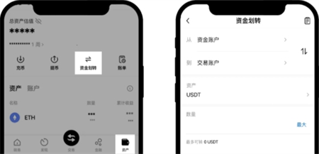 01 同样,将我们的数字资产从资金账户划转到交易账户,如已完成则无须进行额外划转操作。