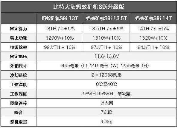 比特大陆蚂蚁矿机S9i升级版三款不同型号参数比较