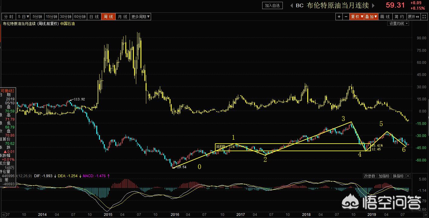 如上图所示,这是中国石油和布伦特原油走势的周线对比,很明显,除了2015年我们因为那波杠杆牛导致走势出现分歧外,其它时间都一致。