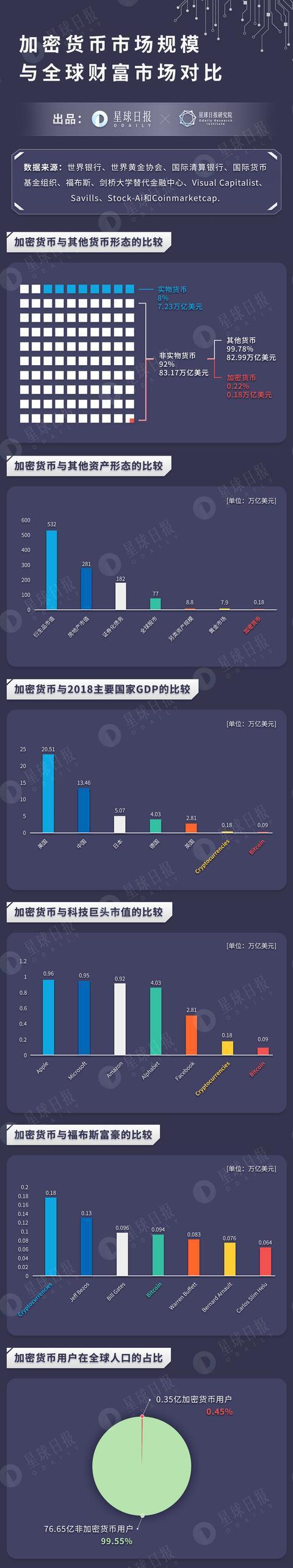 很多名人和机构都试图做出预测。比如,2018年巴菲特、比尔盖茨和马云等人预测比特币的死亡。再比如,2017年7月,迈克菲在推特预测,“未来三年内,你的比特币将涨到50万美元,如果没有,我会在国家电视台直播吃【不可描述】。”(留给他的时间不多了……)据世界经济论坛调研,到2027年预计全球GDP的10%将存在于“链上”。若按世界银行公布的2017年全球GDP 80.68万亿美元估算,2027年的加密货币市场将至少有8万亿美元。这个数字基本平衡了“币圈人的美丽幻想”和监管下的“残酷现实”。